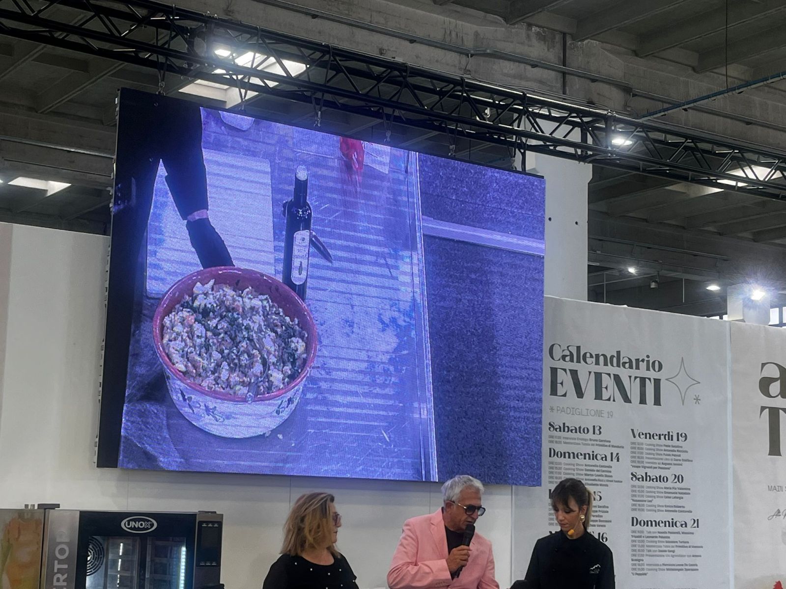 Maria Pia ha aperto il suo showcooking con la storica acqua sale, raccontando il recupero delle materie prime e collegando la ricetta alla sua visione di cucina responsabile. Ha poi presentato il pancotto, simbolo di una tradizione che valorizza ogni ingrediente, spiegando al pubblico il significato culturale di ogni passaggio.